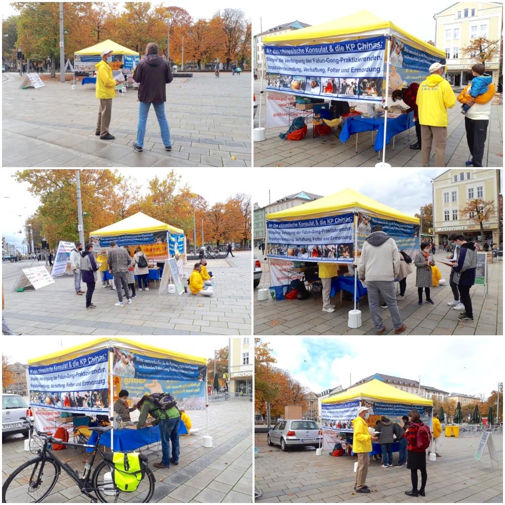 ![]() 图3:二零二零年十月二十四日,法轮功学员在国王广场(Königsplatz)举办信息日活动。 |