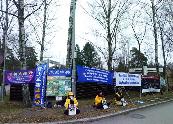 - 国际人权日 芬兰法轮功学员揭露中共迫害(图)- 十二月十日,国际人权日之际,芬兰法轮功学员首都赫尔辛基的中共使馆前及购物中心举办活动,揭露中共迫害法轮功的罪行,要求立即停止迫害法轮功。