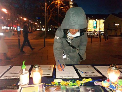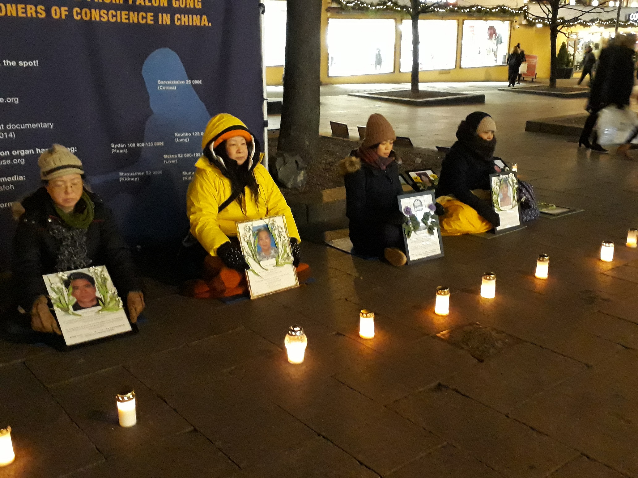 下午三点至六点,学员来到赫尔辛基甘比购物中心外烛光夜悼,并通过演讲向路人介绍法轮大法教人按照“真善忍”做个好人,弘传世界一百多个国家和地区,却遭到中共非法关押,酷刑折磨,甚至被血腥杀戮。