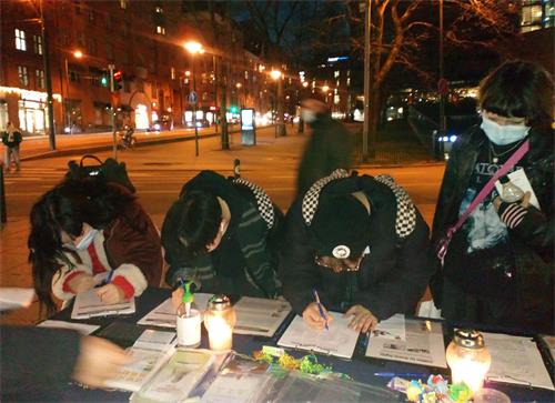 图2:芬兰法轮功学员在赫尔辛基举行烛光守夜活动。