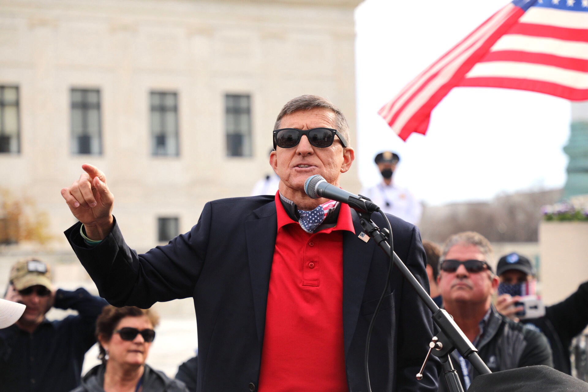 图1:二零二零年十二月十二日,弗林将军在“制止窃选、支持川普连任”的集会上发表演讲。