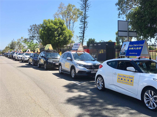 由二十五辆分别载着“法轮大法好”、“三退保平安,瘟疫不沾边”、“天灭中共”、“中共不是中国”、“终结中共(End CCP)”、“中共是最邪恶的病毒,祸害全世界”、“对中共说不(Say No to CCP )”、“中共撒谎,澳洲民众死亡(CCP Lied,Australians Died)”等十七种中英文真相标语的特殊车队浩浩荡荡行驶在首府布里斯班的交通要道上广传真相,他们所到之处获得不少过往车辆赞同的喇叭声:有的民众在路边拍视频记录的;有的民众向车里的法轮功学员挥手致意的;还有一位中国留学生在市中心看到真相车队经过时高声喊:“打倒中共!(Take down CCP!)”
