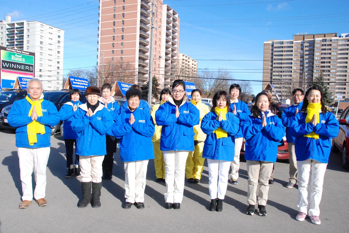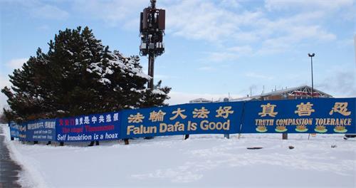 ![]() 图2:多伦多中领馆前讲真相弟子恭祝师父新年好! |