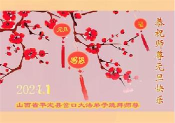 山东省潍坊市大法小弟子恭祝师尊元旦快乐!吉林省辽源市东丰县全体大法小弟子恭祝师尊新年快乐!河南省郑州大法小弟子恭祝师尊新年快乐!
