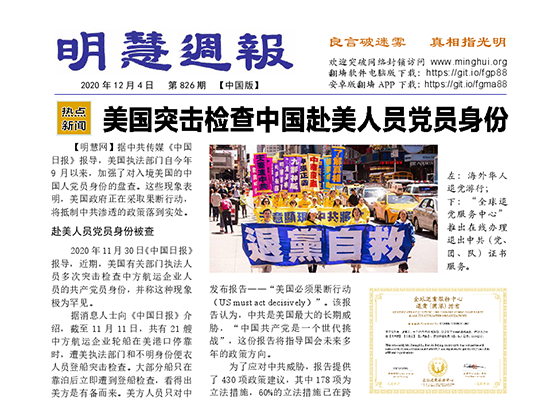 - 明慧周报:中国版(第八二六期)- 美国突击检查中国赴美人员党员身份