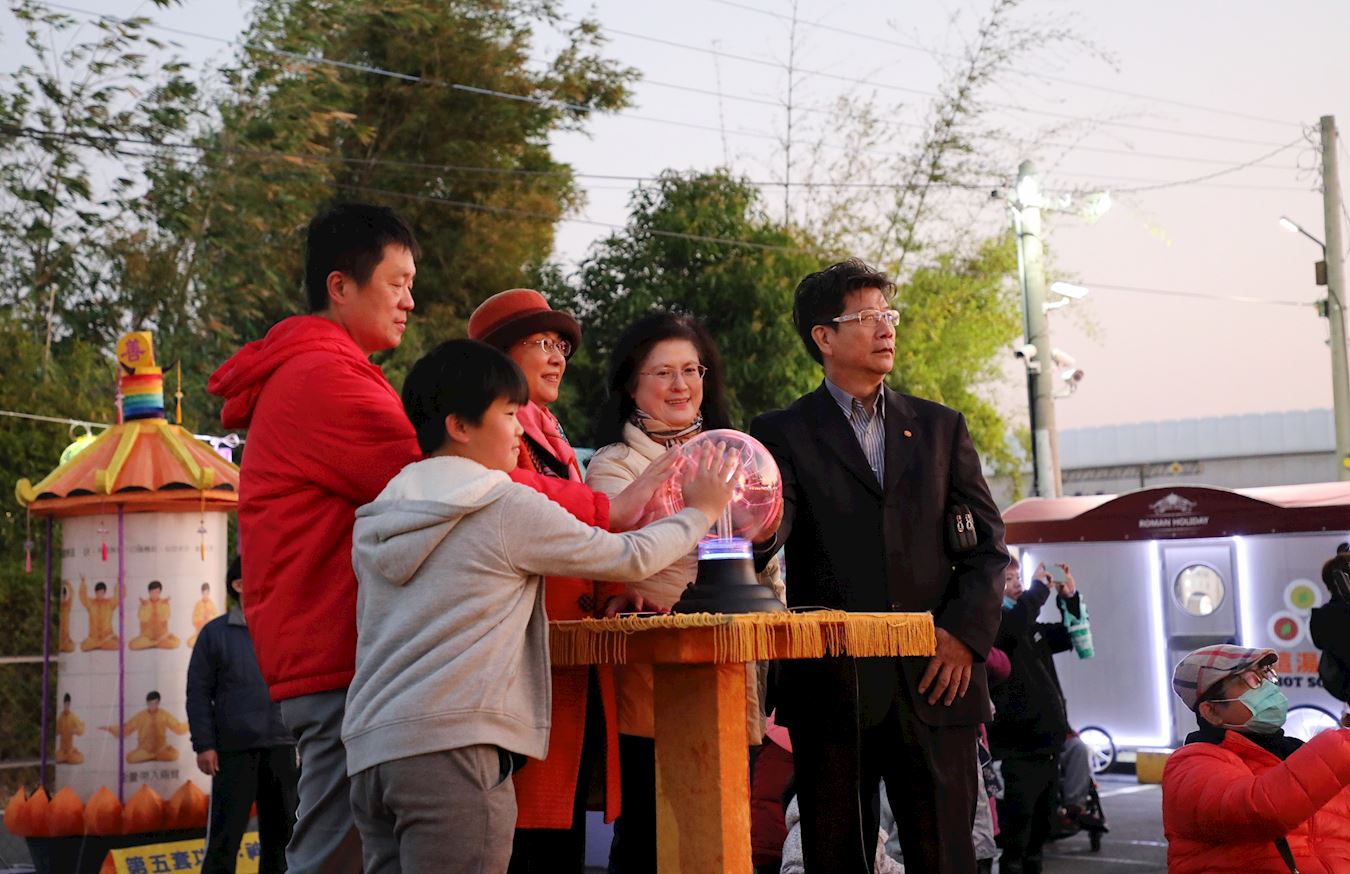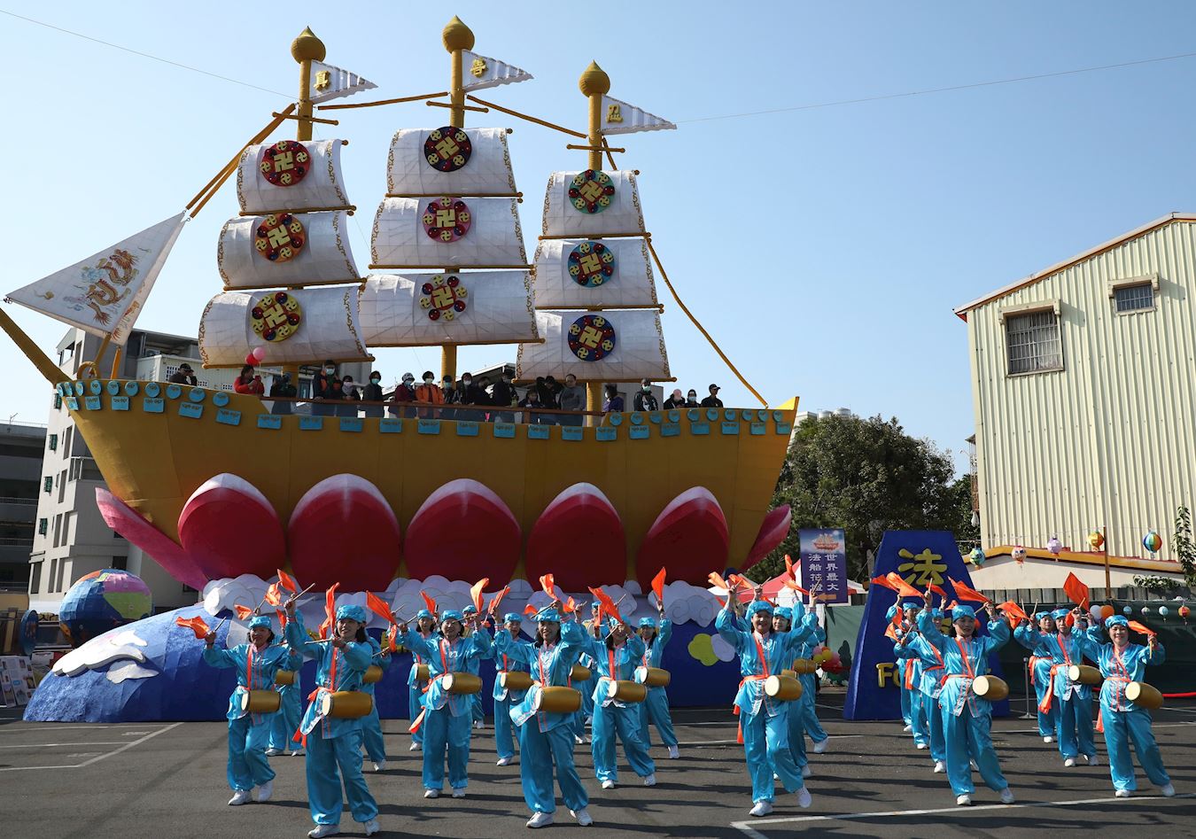 二月八日元宵节开幕当天,法轮功学员组成的腰鼓队、合唱团、新唐人旗鼓队轮番上场表演,为灯会带来节庆热闹气氛。多位地方仕绅到场参与点灯仪式,感谢法轮功学员无私的为社会付出,祈愿法船花灯能为台湾民众带来平安、福报。