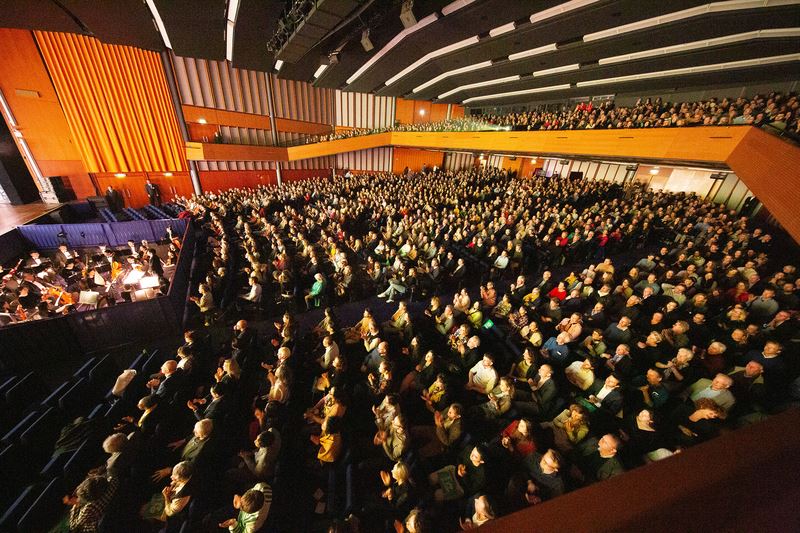 图2:二零二零年二月四日至六日,神韵巡回艺术团在“欧洲文化之都”比利时的布鲁日上演四场演出,场场大爆满。图为四日首场演出的盛况。