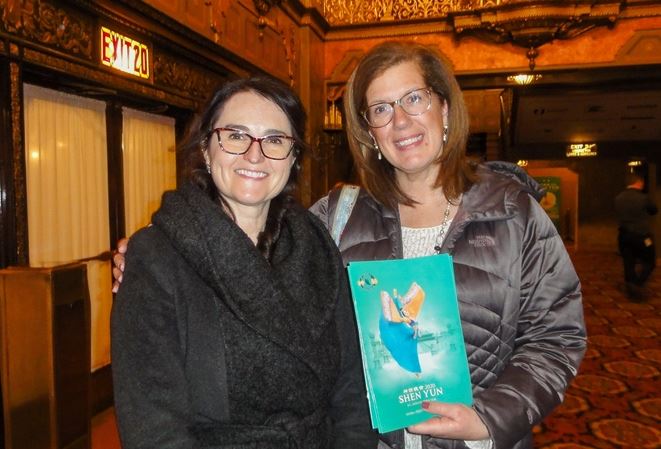 二零二零年二月四日,e-Cycle环境服务公司总裁兼首席营运官珍妮弗·迈尔斯(Jennifer Myers)(右)和朋友观赏了神韵新纪元艺术团在俄亥俄剧院(COLUMBUS Ohio Theatre)的首场演出后表示:“神韵演出非常精彩,是一场触及心灵的体验”。