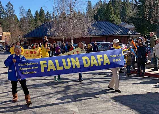 二零二零年二月九日,加州首府沙加缅度地区的法轮功学员受邀参加一年一度的内华达市新年庆祝游行,将法轮大法的美好和真相传给当地居民。