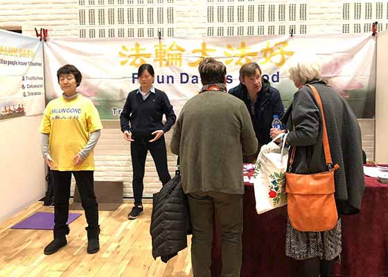二零二零年二月十五日和十六日,法轮功学员再次来到丹麦第三大城市奥登赛参加为期两天的健康博览会,把法轮大法的美好带给这里的民众。