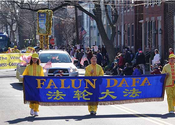 2月17,美国弗吉尼亚州亚利山德里亚市举行盛大游行,庆祝美国开国总统乔治华盛顿诞辰288周年,华府法轮功学员再次应邀参加游行。