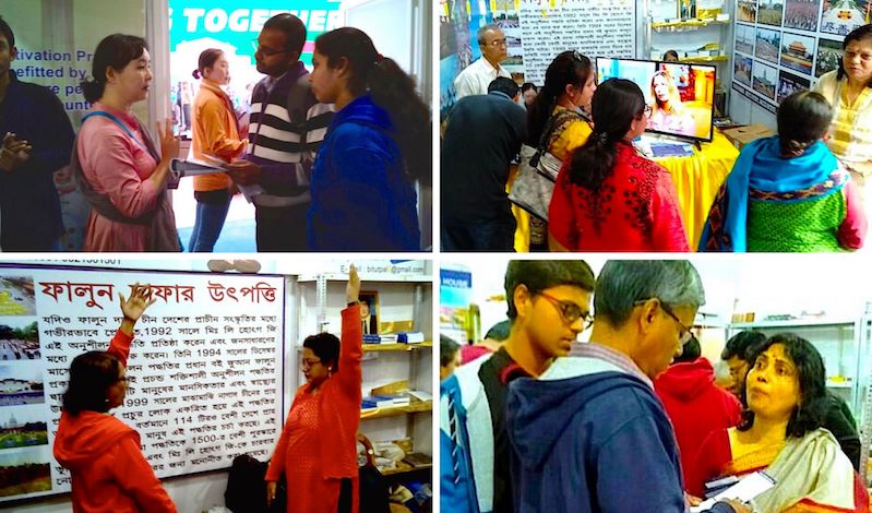 ![]() 图2:印度法轮功学员在加尔各答国际书展上讲真相教功 |