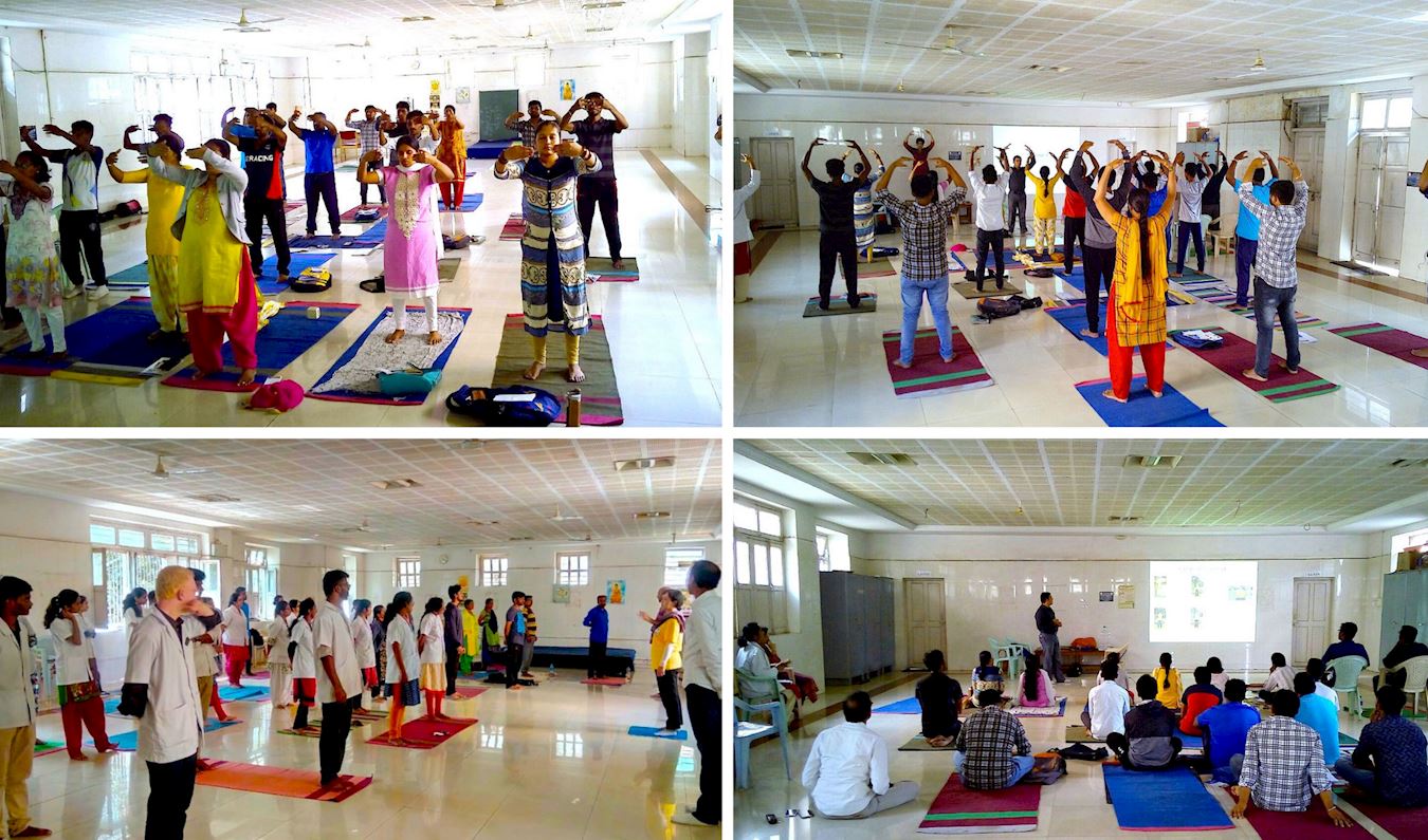 二零二零年一月二十日班加罗尔的学员们再次受到班加罗尔阿育唯达医科大学的邀请为其他还没有学到法轮功的大学生教功。这一次学员们为医科大学的师生们教授了第一至五套法轮功全套功法,教完功后,学生们跟学员们要了联系方式,有的学生表示要上网去下载法轮功书籍,因为他们炼功感觉很好,想进一步了解法轮功的功理功法。