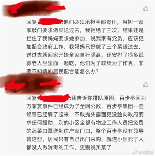 万家宴之后疫情消息扩散,有社区内居民在网络上分享自己的情况说,自家被强邀去为万家宴送菜;疫情蔓延后,集团领导不敢抛头露面,基本的卫生消毒还不如别的小区。