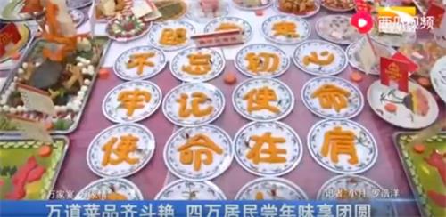 万家宴中,一些歌颂中共的主题菜被高调展出,其中包括“庆祝新中国成立70周年”主题菜、“武汉军运会赛事菜”,向党表忠心、为党歌功颂德菜。