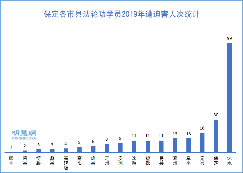 图:保定各市县法轮功学员2019年遭迫害人次统计
