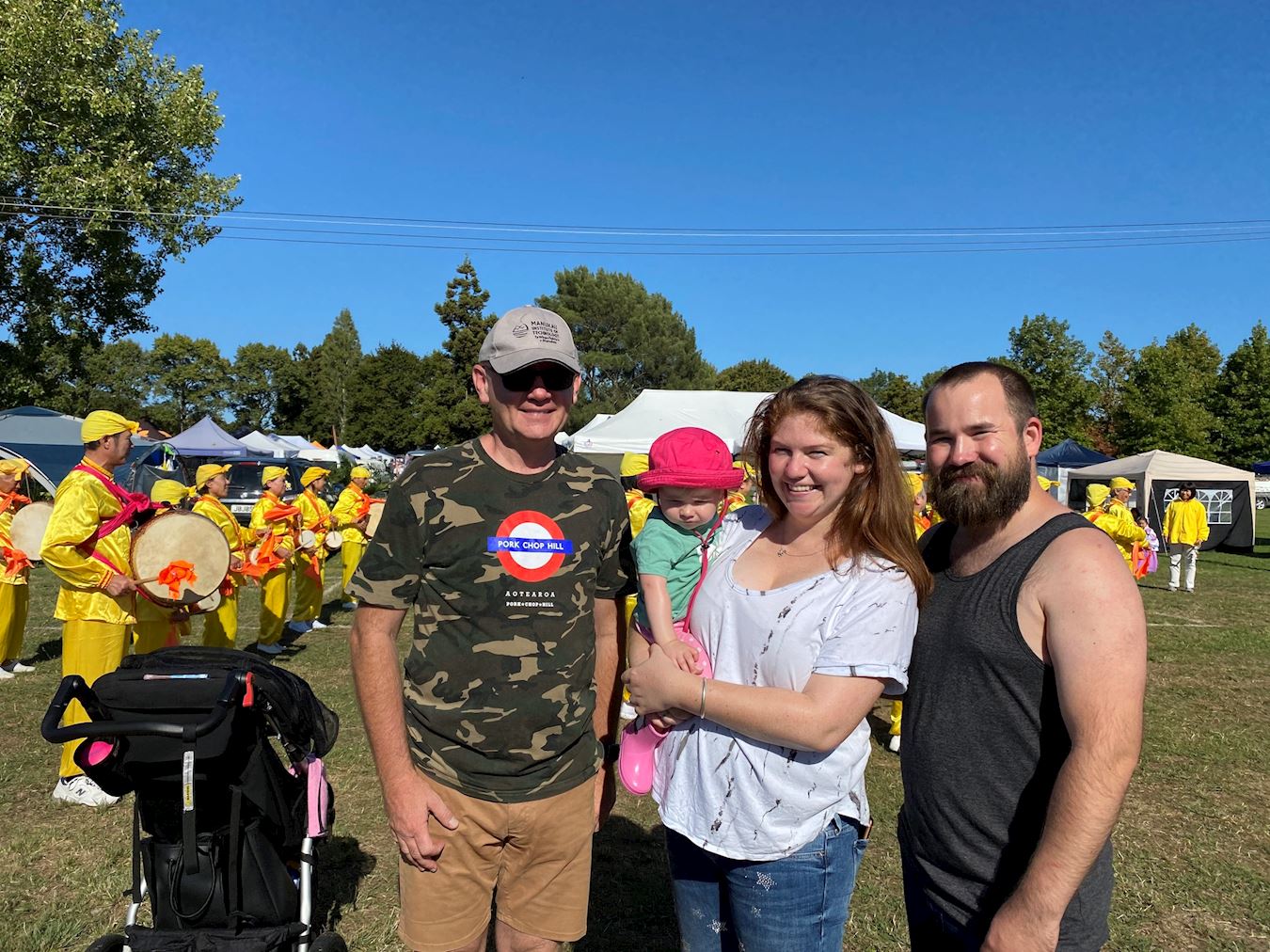 格斯·吉尔摩(Gus Giomore)和他的女儿一家驻足观看法轮功学员的舞龙和腰鼓表演,他是新西兰航空(Air New Zealand)香港及中国大陆区域经理。他说:“我们很喜欢舞龙表演,因为我们之前住在香港,所以无论哪里有舞龙表演我们都会去看。我觉得这种表演很精彩。那色彩和动作,还有龙本身都是如此让人惊叹。”