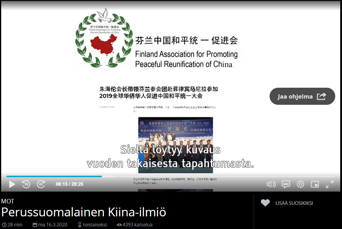 '图4:芬兰统促会 (图片截图来自YLE调查纪录片“中国影响”)'