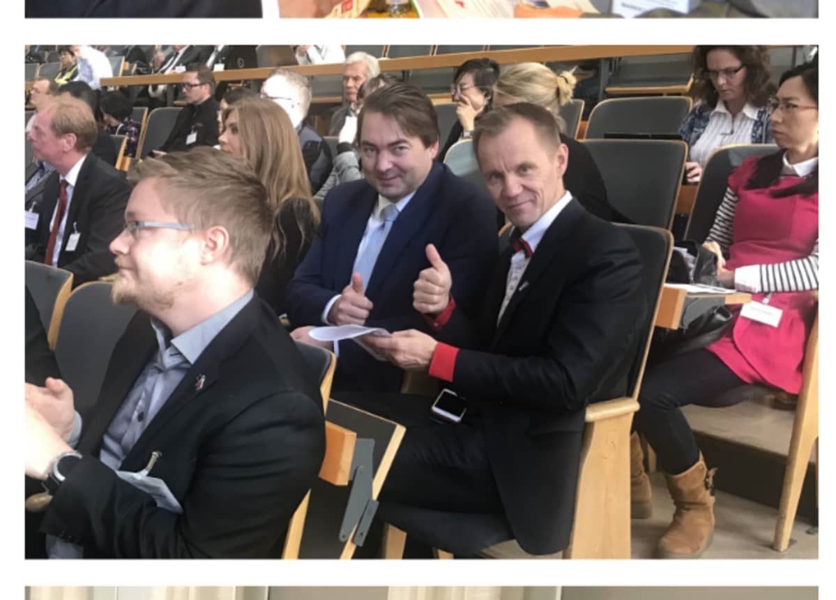 图9:国会议员Ville Vähämäki和Mika Niikko于2018年10月在杨二林举办的中芬商业与投资峰会上。(图片来自YLE)