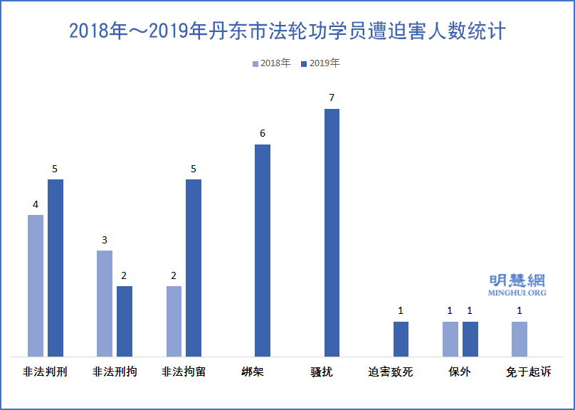 图1:2018年~2019年丹东市法轮功学员遭迫害人数