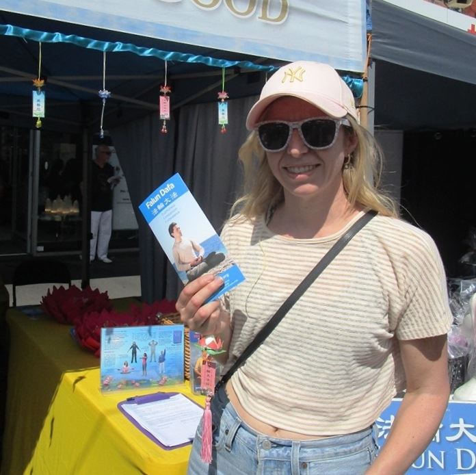 家住附近城区基尤(Kew)区的小学教师福斯特(Rachael Foster)第一次听说法轮功,非常感兴趣,表示她一直在寻找提升自己的方法,而法轮大法和“真善忍”价值观正是自己在寻找的。她说:“有意思的是,我刚刚为自己列出了最重要的十种价值,其中列在第一个的就是‘善’,身为教师,我一直希望自己能做到‘善’,而且我也意识到当老师需要很有善心才行,所以在日常生活中尽可能的要求自己做到与人为善。”