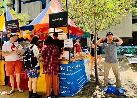 在澳大利亚悉尼的麦格理大学迎新周活动中,众多师生和新生关注法轮大法真相,其中有八十多人报名加入法轮大法俱乐部。
