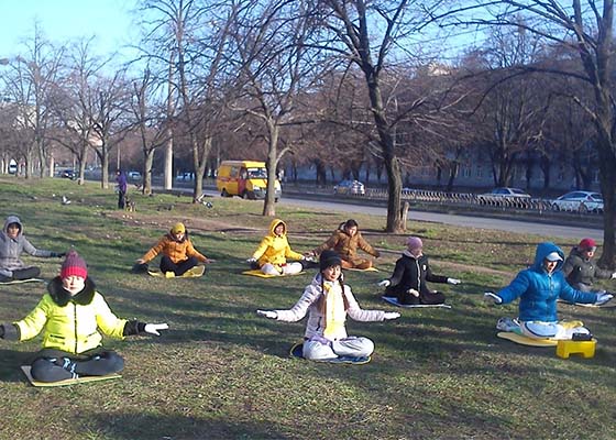 乌克兰第二大城市哈尔科夫对“中共疫情”也采取了应对措施,其中包括社交团体人数不得超过十人。从三月下旬至四月,在不违背市政厅的管制条例下,当地法轮功学员来到户外集体炼功,传播真相。