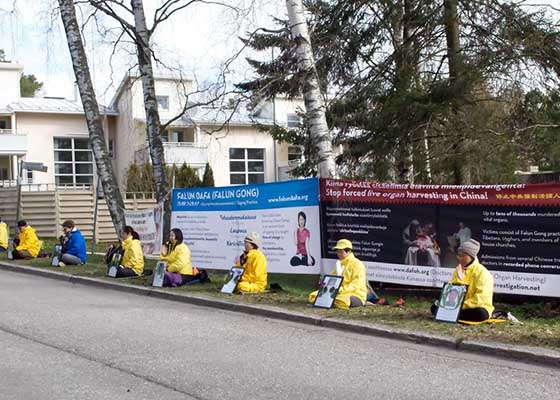 纪念四二五 芬兰法轮功学员在大使馆前和平抗议(图)