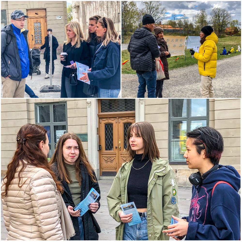 图6:瑞典法轮功学员面对面向世人讲述法轮功真相,揭露中共谎言