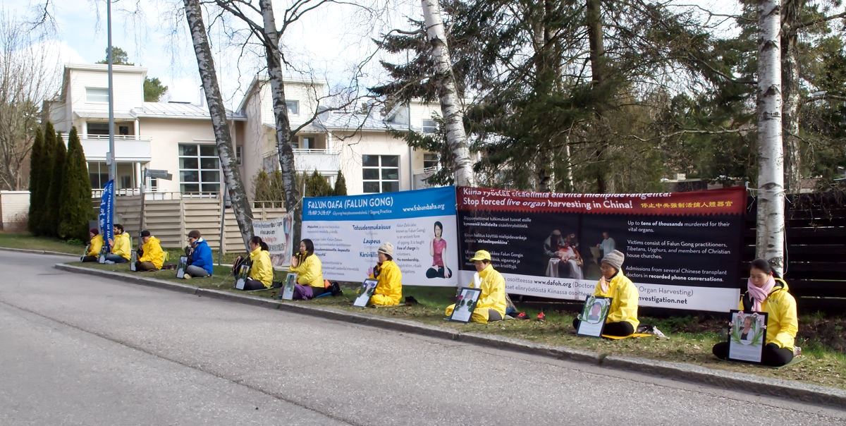 纪念四二五 芬兰法轮功学员在大使馆前和平抗议(图)