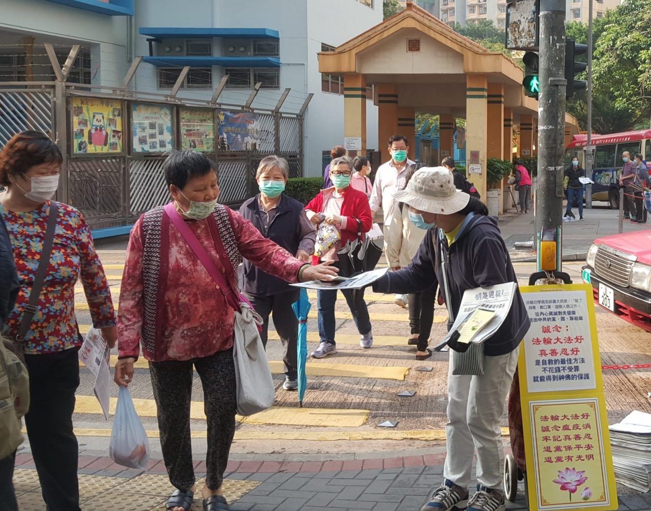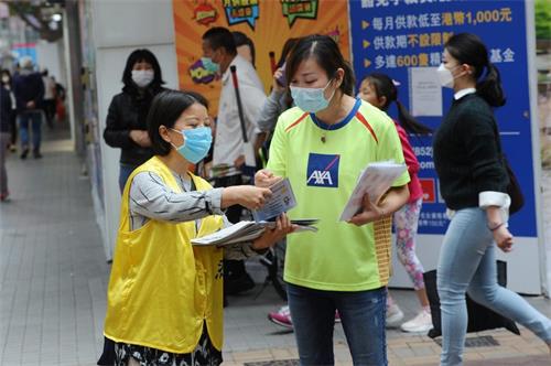 图2~3:香港法轮功学员在全港各地派发真相资料及讲清法轮功被中共迫害的真相。