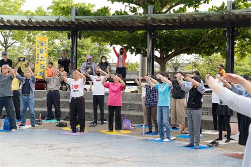经常往来台海两岸经商的彭先生走近观看法轮功学员功法演示良久,彭先生说:“我在大陆接过法轮功的传单,前阵子刚从大陆迁厂至东南亚,在网路浏览过法轮功简介,觉得这功法很不错。”彭先生问:“这功法对抵抗这次的新型冠状病毒有帮助吗?”学员告诉他:“有。修炼法轮功,身心素质都能提高,在大陆若能真心诚念‘法轮大法好,真善忍好’这九字真言,能救命,这可是抗疫良方。”彭先生听后很高兴说:“那我得赶快加入你们,并告诉我在大陆的朋友。”