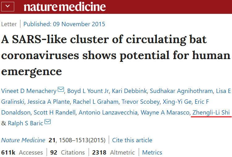 2月1日,《美国五年前制造新型冠状病毒,可致人类传染性肺炎》一文,在中国大陆引起震动。该文曾被“美国阴谋论者”作为攻讦的利器,今已被中共舆控屏蔽。它的根据,是国际著名科学期刊Nature Medicine的这篇论文。
