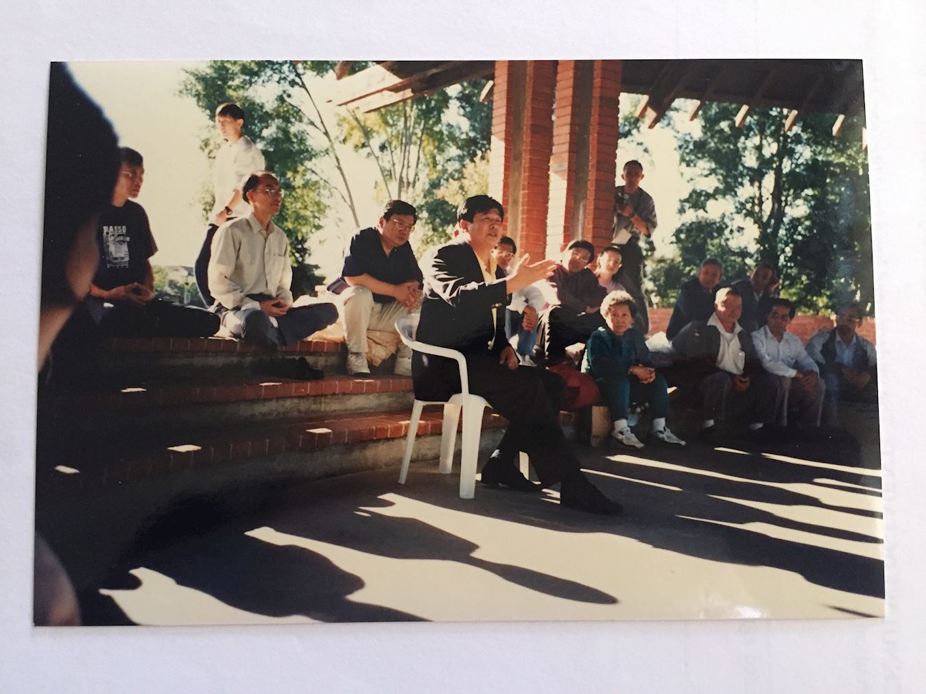 回忆起当年师父来湾区、在奥德嘉公园讲法,当时是南湾地区义务负责人的他说,记得当时大家在公园的一个大亭子那儿,围成了二圈,大概有二、三百人吧,亭子里人都站满了。本来只是在那里炼功的几十个学员知道师父要来,结果当天来了那么多人,可能都是大家得到了消息,都希望能见到师父,结果就来了那么多人。
