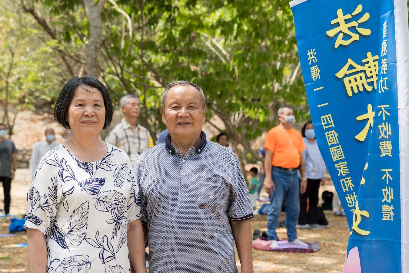教师研习营结束后,夫妻在家一起学法炼功,可是炼功动作不知不觉中有了走样,一个月后觉得这样下去不行,就去冈山找炼功点,经辅导员耐心的归正,把五套功法炼正确。自此他们天天到炼功点晨炼,风雨无阻,数年如一日。
