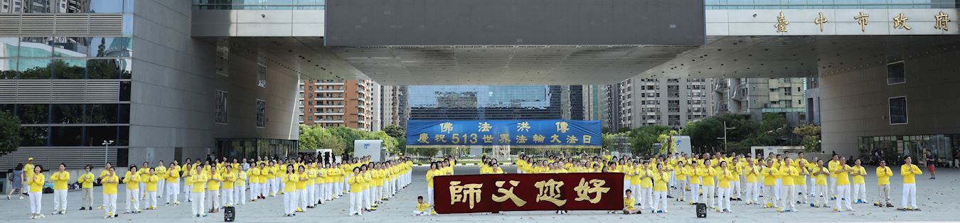 【明慧网二零二零年五月十一日】(明慧记者刘文新台湾台中采访报导)为迎接第二十一届“五一三世界法轮大法日”,暨法轮功创始人李洪志先生六十九岁华诞,二零二零年五月九日,台湾台中法轮功学员在台中市市政府广场前,以炼功洪法的形式,向市民展示法轮大法的美好,传递“法轮大法好、真善忍好”的精神,庆贺世界法轮大法日,并祝贺师尊生日快乐。