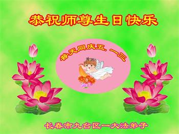 - 吉林省大法弟子恭贺世界法轮大法日暨师尊华诞(22条)- 在这二十多年来,在师父的慈悲保护下走到今天,千言万语一句话,弟子唯有更加精進,做好三件事,走好最后的路,不辜负师父的慈悲苦度,唯愿师尊笑。