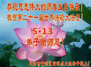 - 天津大法弟子恭贺世界法轮大法日暨师尊华诞(19条)- 5.13在这普天同庆的日子里,弟子祝师尊生日快乐!师父好、师父辛苦了,千言万语无法表达对师尊的感恩之心,弟子遥拜师尊!