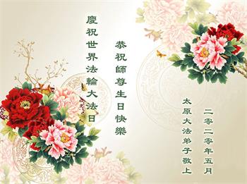 - 山西大法弟子恭贺世界法轮大法日暨师尊华诞(20条)- 师尊正大穹、救众生,万般辛苦!师尊在上,徒儿给师尊三叩首,在师尊寿辰之际,用肺腑之言:学好法、炼好功、发好正念、多救众生,来报答师尊的救度洪恩。