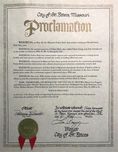 鉴于,密苏里州的志愿者积极的参与社区活动,将法轮大法的功法和文化介绍给民众;