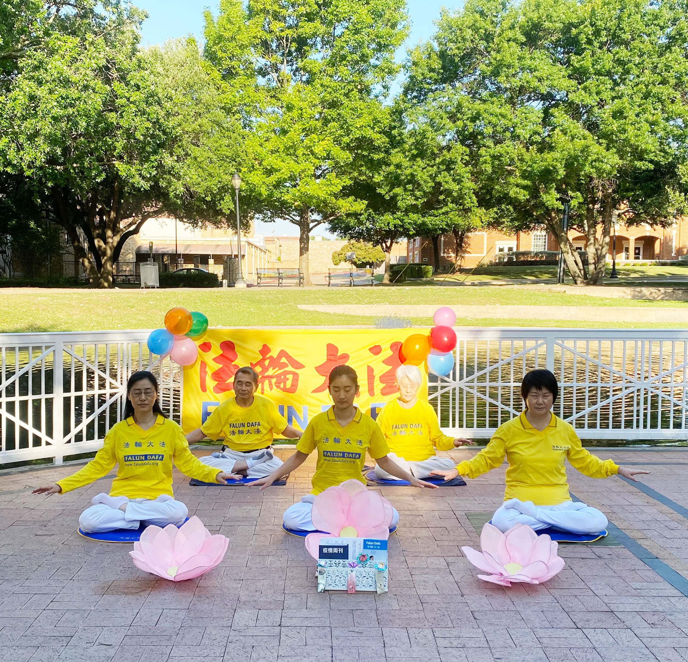 今年中共病毒(武汉肺炎)爆发,德州政府曾颁发禁足令。随着情况缓解,德州于五月一日解禁,公园开放,游人需保持社交距离。达拉斯法轮功学员没有象往年那样举办由全体学员参加的大型户外集体炼功、教功和集会,而是在自己城市的炼功点举办小规模的集体炼功,他们希望更多的市民有缘看到和有机会了解法轮功,在疫情中,能看到正面信息、获得避疫良方,去掉恐惧,平安度过艰难时期。