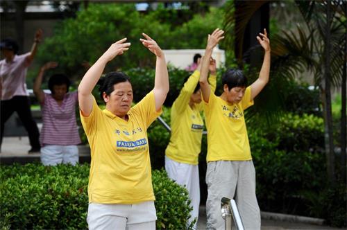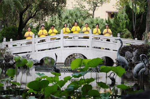 五月九日,香港法轮功学员在市区一个公园,以八人为一组的形式集体炼功,庆祝法轮大法日。之后,部份法轮功学员还到师尊曾经讲法的香港大屿山,缅怀师尊传法的日子,表达对慈悲伟大的李洪志师父的感恩之情。
