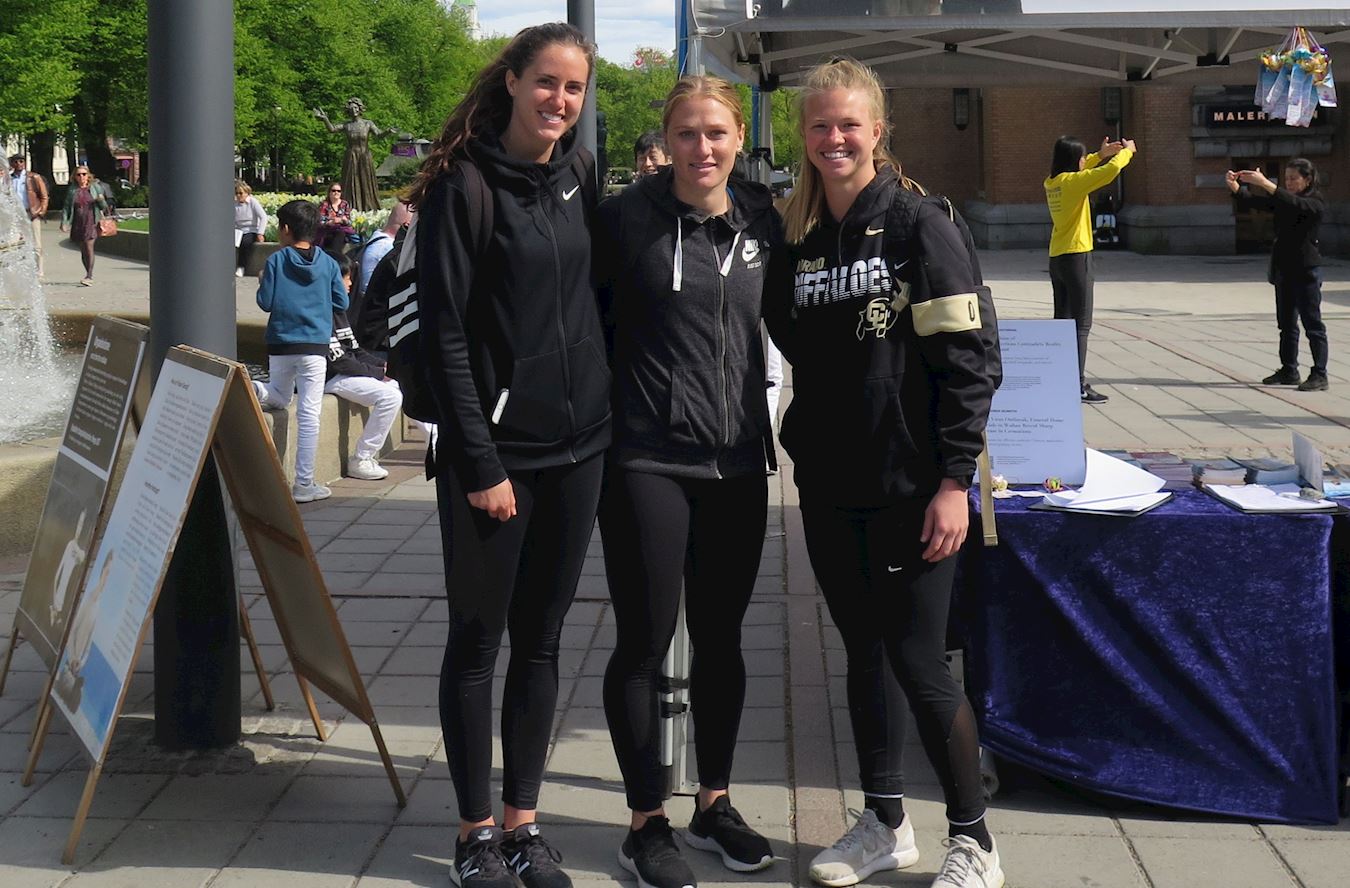 ![]() 图5:五月九日,来自新西兰的吉拉(Jila)(中)和她的两个朋友签名呼吁停止迫害 |