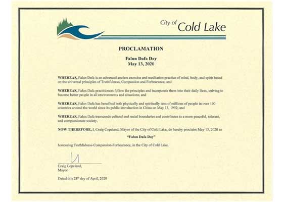 加拿大亚省五市镇褒奖法轮大法(图)