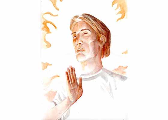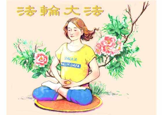 说明:画面展现的是法轮功学员在炼法轮功的第五套功法“神通加持法”时所展现出的宁静祥和的状态。