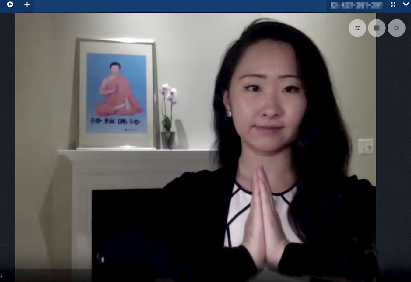 ![]() 图6:艾米莉(Emily)在交流前感谢师尊和同修。 |