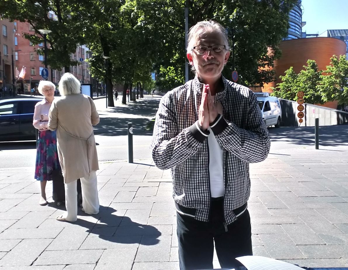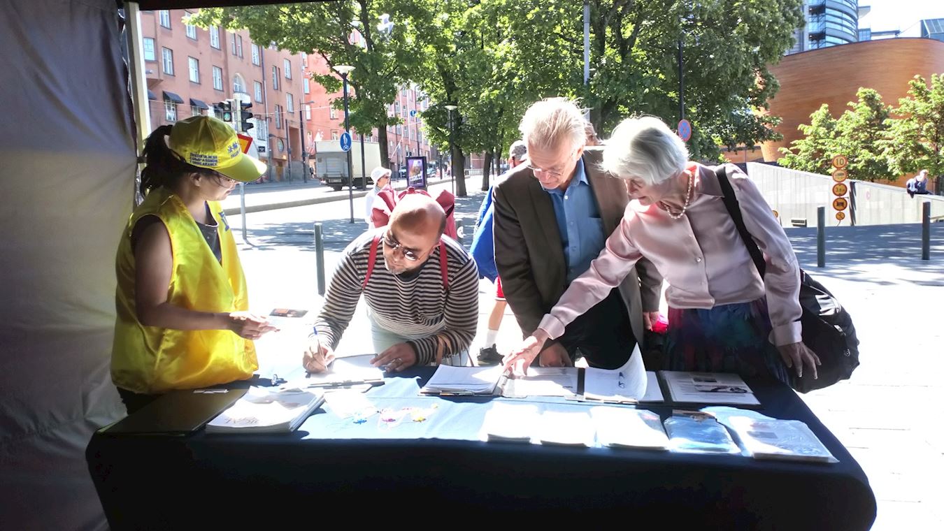 伊尔梅里(Ilmeri)女士接过学员发的传单,一看是法轮功的信息,也想签名。她告诉学员,她认识居住在科沃拉(Kouvola)城市的一中国家庭,从他们那里了解到法轮功被迫害的消息。