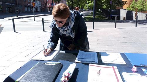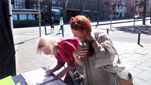 '图2~5:芬兰民众了解真相后签名,反对中共迫害法轮功'