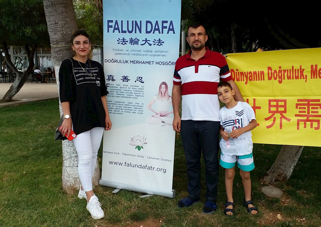 来自皮特曼(Batman)市的塞尔皮尔女士 (Serpil)和她的家人来到学员的展位,想了解法轮功。她六岁的儿子对法轮功非常感兴趣,学了一个小时的功法。法轮功学员告诉他们,法轮大法的原则是“真善忍”,教人做好人,但这么好的功法却在中国受到迫害。塞尔皮尔女士和她的丈夫非常震惊,他们索要了更多的资料要送给他们的朋友。
