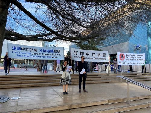 他还说:“我有不少非常好的中国朋友,他们都是好人,可中共是邪恶的。我有一个朋友和同事是中国人,一个挺好的女孩子,可是她却认为中共政府是好的。他们看不到这些(真相),中共也欺骗自己的民众,所以你们的责任是要让更多更多的人知道事实真相,在中国这样做可能会被送进监狱,可是在这里,你们要告诉更多的民众,要告诉新西兰各级政府,不停地跟他们去讲,让他们也能站在这里,参与这样的活动,毕竟谁也不想和恐怖组织做贸易,新西兰人要知道更多这样的真相。”